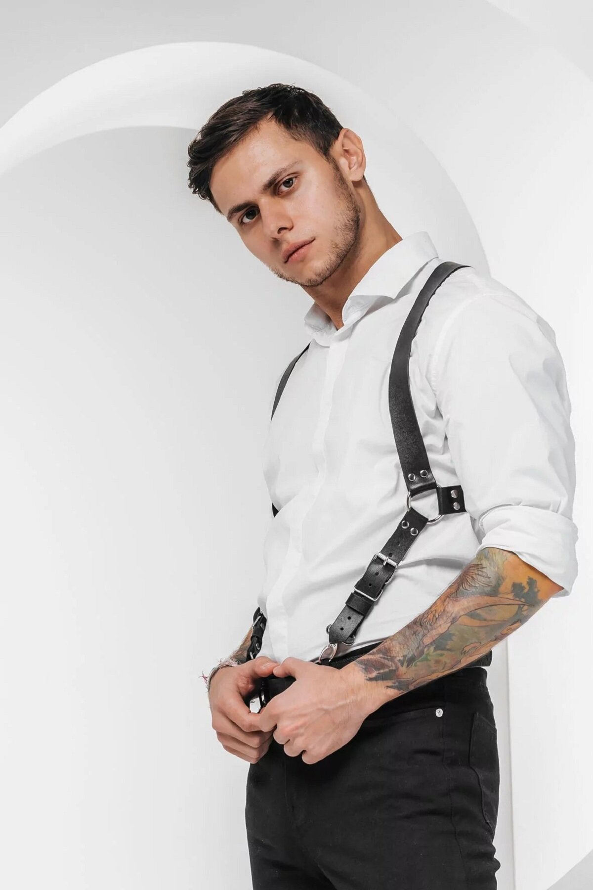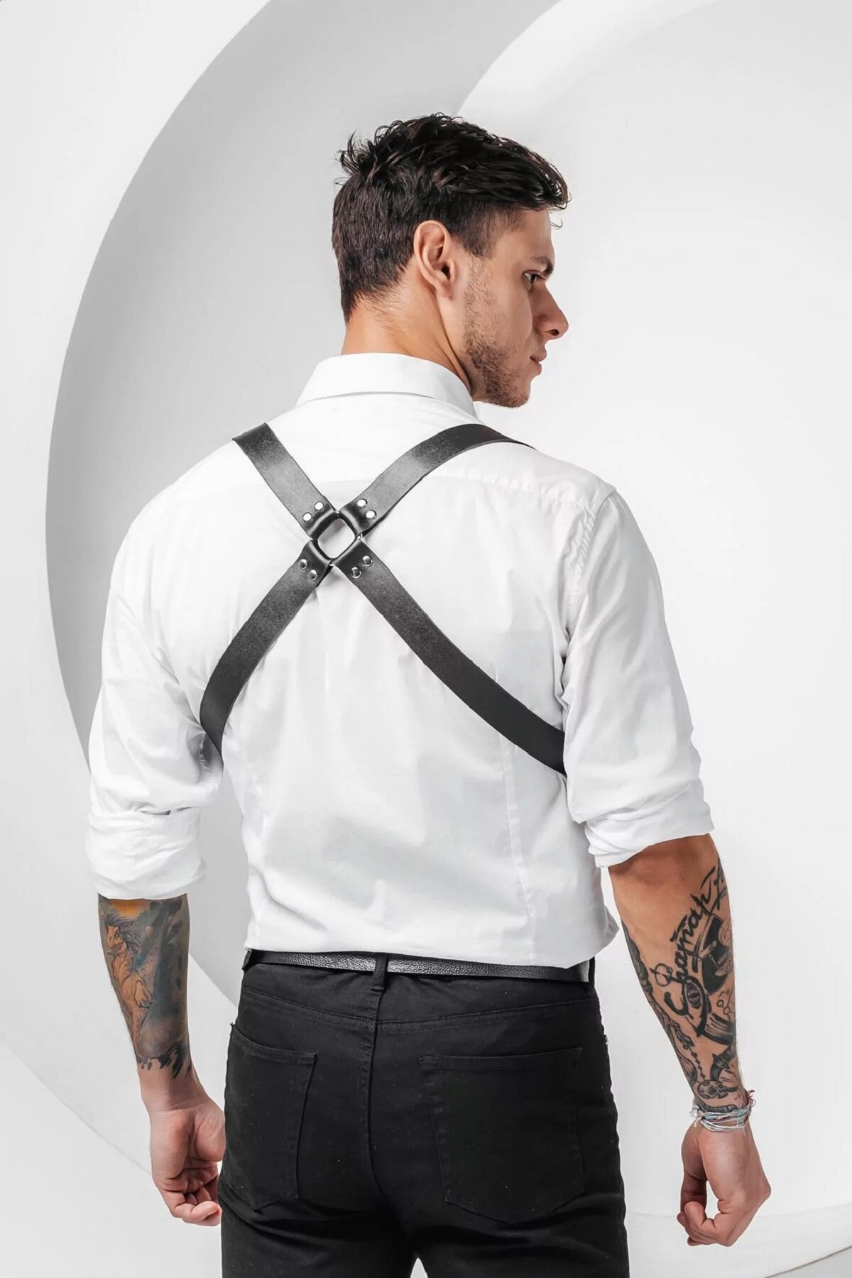 Портупея мужская стильный аксессуар, который прекрасно дополнит гардероб и подчеркнет вашу силу и власть. Изготовленная из натуральной кожи, она обладает не только элегантным внешним видом, но и долговечностью. Регулируемые ремни портупеи обеспечивают удобную и комфортную посадку на тело, а металлические карабины позволяют легко прикреплять ее к брюкам и джинсам. Портупея офицерская раньше была частью военного снаряжения, сейчас подтяжки часть современного образа для вечеринки, мальчишника, свадьбы. Дерзкие широкие лямки делают акцент на крепких плечах парня, подчеркивая мужественную грудь. Кожаная портупея обладает приятной на ощупь текстурой. Размер и форма были тщательно спроектированы, чтобы улучшить функциональность и практичность. Поэтому изделие обеспечивает оптимальный комфорт при ношении. А удобные лямки, кольца и заклепки придают фигуре привлекательности и брутальности. Вы можете надеть ее сверху на рубашку или просто на торс. Кроме того, портупея армейская может быть частью костюмов для тематических фестивалей, вечеринок, фотосессий. Порадуйте подарком любимого мужа, папу, друга на 23 февраля, день влюбленных или на день рождение. Изготовлена из натуральной кожи высокого качества с приятным текстурным покрытием. В меру мягкая и эластичная, не теряет форму и не растягивается. Имеет ширину 25-30 мм и толщину 2-2,2 мм. При изготовлении наших изделий мы используем качественную фурнитуру с никелированным покрытием, которая не темнеет и не ржавеет даже при попадании влаги. В комплекте к подтяжкам идет два крепежа. Визитной карточкой бренда ПодКожей является обработка всех боковых срезов кожи полиуретановой краской, что не позволяет материалу впитывать влагу во время эксплуатации и продлевает срок службы.