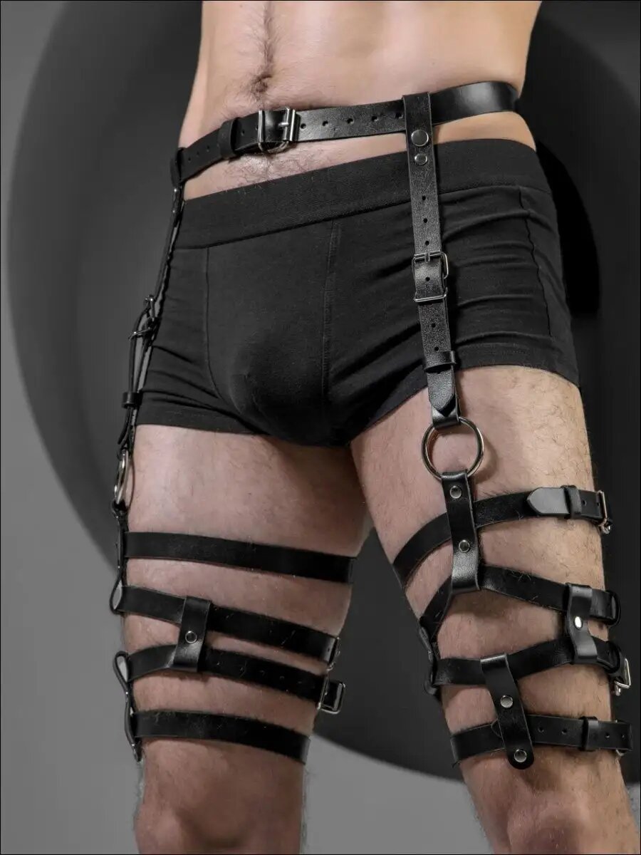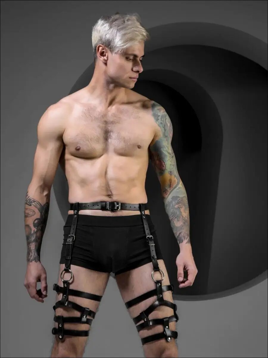 Портупея на ногу мужская — гартер на бедра эротические из ремней кожи, черные, размер M/L: сравнение цен, характеристики, фото, актуальное наличие и цены.
