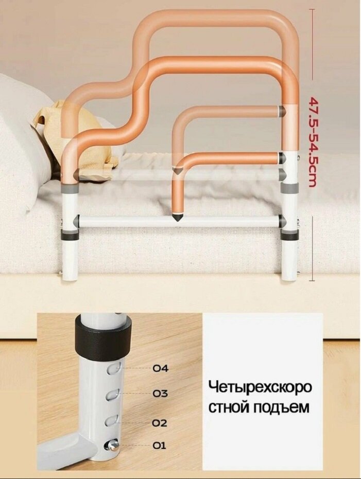 Высота поручня регулируется. Поручень изготовлен из мягкого вспененного материала, за который удобно держаться. При помощи подлокотника легко встать с кровати, снижается нагрузка на поясницу и колени. Ограждение для кровати подходит для пожилых людей с проблемами опорно-двигательного аппарата, инвалидов, лежачих больных. Защитное ограждение от падений + приподнятая спинка: защитное ограждение может служить защитным барьером для предотвращения случайного перекатывания во время сна; Приподнятая конструкция спинки обеспечивает дополнительную поддержку, делая сидение более безопасным при длительном чтении или отдыхе, а также снижая риск падения из-за головокружения при вставании. Поддерживает четыре уровня регулировки высоты и может гибко настраиваться в соответствии с различной высотой кровати (например, кровати с низким или высоким ящиком), чтобы гарантировать, что высота подлокотника соответствует позе сидящего/стоящего пользователя и повысить эффективность помощи. Поручень покрыт мягкой пеной, которая приятна на ощупь и не холодит, что делает ее более комфортной для использования. Он также нескользящий, что усиливает безопасность при вставании. Основная группа населения: пожилые люди, люди, восстанавливающиеся после операций, беременные женщины, а также молодые и люди среднего возраста с ограниченной подвижностью;