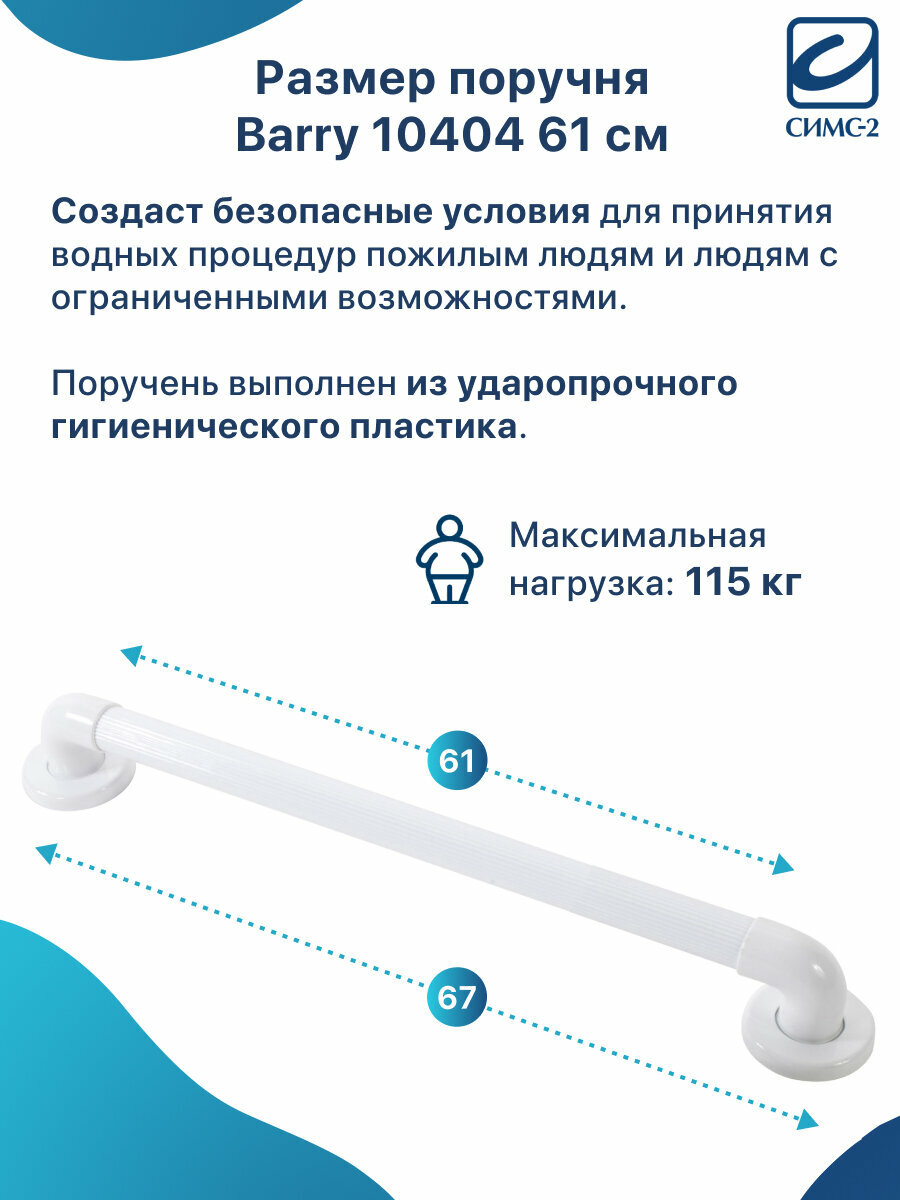 Поручень 10404 помогает сохранять равновесие во время использования ванны. Изделие позволяет чувствовать себя комфортнее и увереннее пожилым людям и людям с нарушенной координацией движений. Рифленая поверхность создает хорошее сцепление с рукой для большей безопасности пользователя. Ручка изготовлена из ударопрочного и гигиенического пластика.