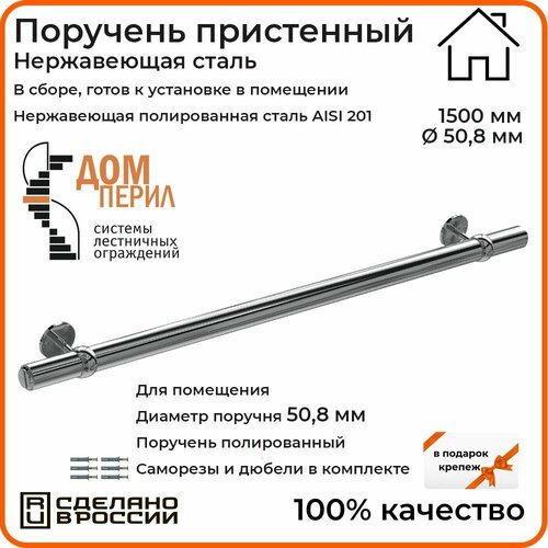 Поручень пристенный Дом перил из нержавеющей стали диаметр 50 мм 1500 мм (Кронштейн «кольцо») для установки в помещении: сравнение цен, характеристики, фото, актуальное наличие и цены.