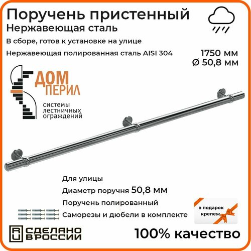 Поручень пристенный Дом перил из нержавеющей стали диаметр 50 мм 1750 мм (Кронштейн «кольцо») для установки на улице: сравнение цен, характеристики, фото, актуальное наличие и цены.