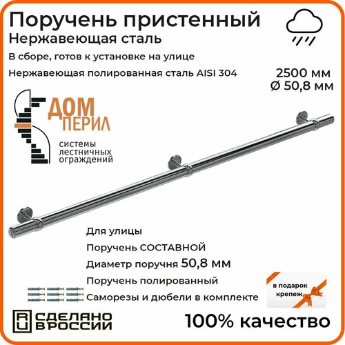Поручень пристенный Дом перил из нержавеющей стали диаметр 50 мм 2500 мм (Кронштейн «кольцо») для установки на улице: сравнение цен, характеристики, фото, актуальное наличие и цены.