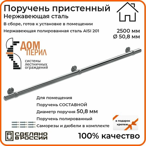 Купить Поручень пристенный Дом перил из нержавеющей стали диаметр 50 мм 2500 мм (Кронштейн «кольцо») для установки в помещении с доставкой по всей России.