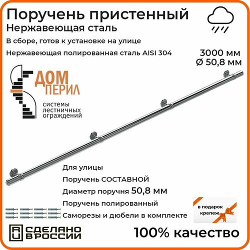 Поручень пристенный Дом перил из нержавеющей стали диаметр 50 мм 3000 мм (Кронштейн «кольцо») для установки на улице: сравнение цен, характеристики, фото, актуальное наличие и цены.