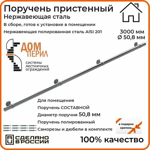 Поручень пристенный Дом перил из нержавеющей стали диаметр 50 мм 3000 мм (Кронштейн «кольцо») для установки в помещении: сравнение цен, характеристики, фото, актуальное наличие и цены.