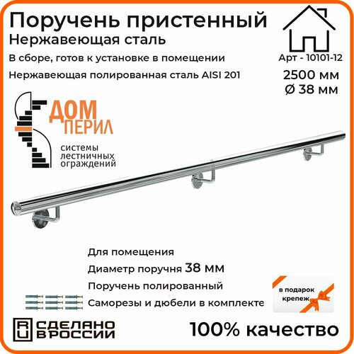 Поручень пристенный Дом перил (составной) из нержавеющей стали диаметр 38 мм 2500 мм для установки в помещении: сравнение цен, характеристики, фото, актуальное наличие и цены.