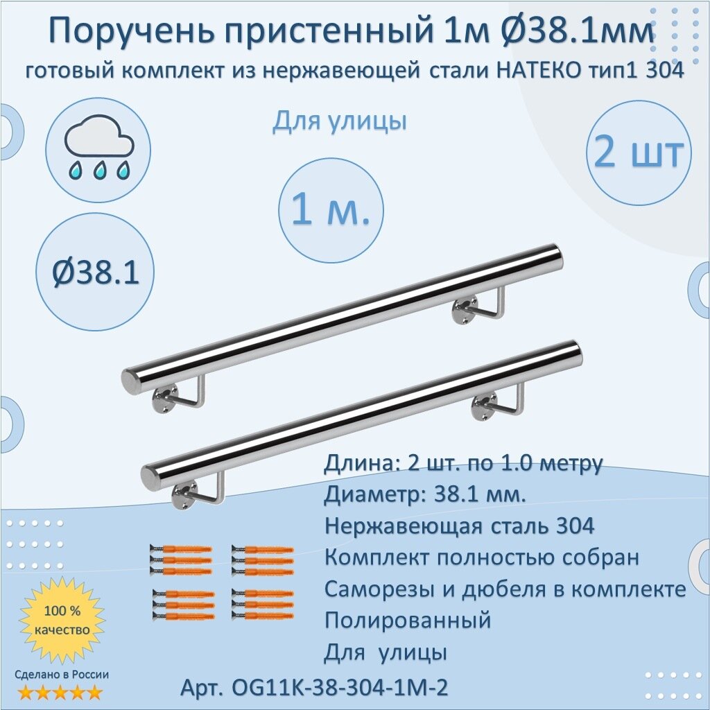 Поручень пристенный из нержавеющей стали натеко. Тип 1. 38.1 мм 1000 мм. Для улицы AISI 304. Полировка. Кронштейн перила к стене (2 шт): сравнение цен, характеристики, фото, актуальное наличие и цены.