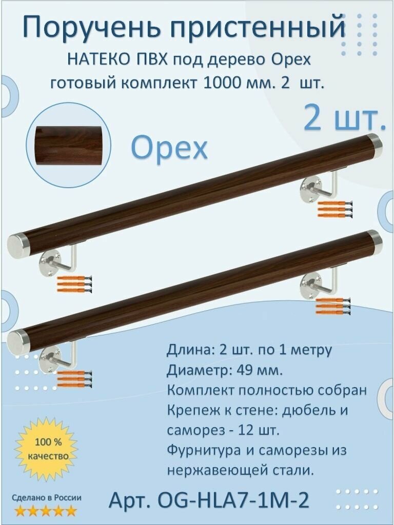 Поручень пристенный натеко, готовый комплект, 1000 мм, Орех, ПВХ под дерево (2 шт.): сравнение цен, характеристики, фото, актуальное наличие и цены.