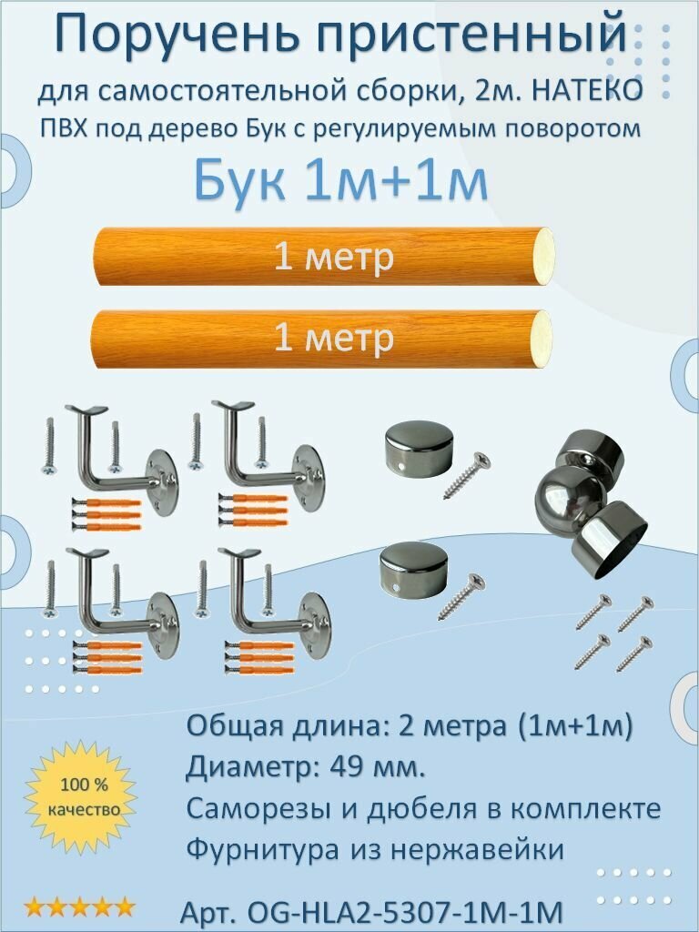 Поручень пристенный натеко с регулируемым поворотом, 1м+1м, Бук, ПВХ под дерево: сравнение цен, характеристики, фото, актуальное наличие и цены.
