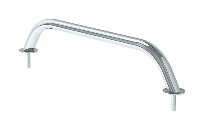 Поручень изготовлен из нержавеющей стали. Расстояние по центрам оснований - 300 мм. Высота поручня от поверхности до центра ручки - 70 мм. В комплект входит: винт полупотайной М8х40 DIN966 (2 шт), шайба кузовная М12 А2 DIN9021 (2 шт).