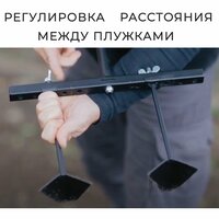В отличии от тяпок или мотыг, борозды выкапываются быстро и просто, Вы просто тянете за ручку и они начинают вскапывание. Расстояние между грядками можно регулировать, благодаря переставляемым рабочим частям, фиксируются они в пяти положениях, шаг между отверстиями составляет 5 см.