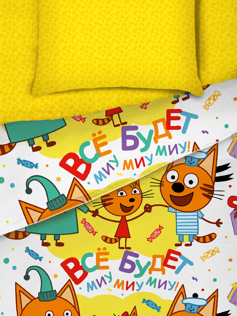 Купить Постельное белье 1,5-спальное для детей Василек, Бязь, наволочки 70х70, Три кота с доставкой по всей России.