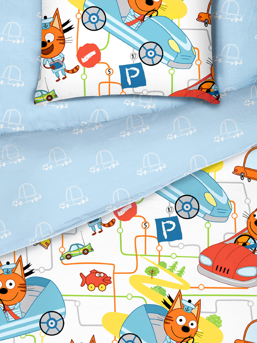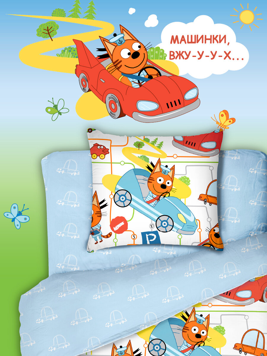 Постельное белье 1,5-спальное для детей Василек, Бязь, наволочки 70х70, Три кота, Машина для Коржика: сравнение цен, характеристики, фото, актуальное наличие и цены.
