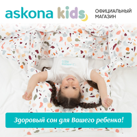 Материал 100% сатин (плотность переплетения 200 ТС) обеспечит комфорт и нежные тактильные ощущения, сравнимые с ласковыми объятиями мамы. Комплект так же можно дополнить простыней Askona Kids Аква (приобретается отдельно).