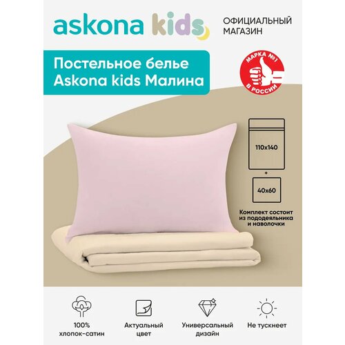 Однотонное постельное белье - универсальное решение для детского спального места. Мы решили поиграть с цветами и оттенками и нашли идеальное сочетание жемчужно - бежевого и пудрово - розового. Отличный вариант для спальни юной девочки. Натуральный сатин (хлопок) подарит ощущение свежести и мягкости прикосновений. Ткань не теряет свой формы даже после множества стирок. 100% сочетание с простынями Askona Kids. КПБ Малина можно дополнить простынью Миндаль.
