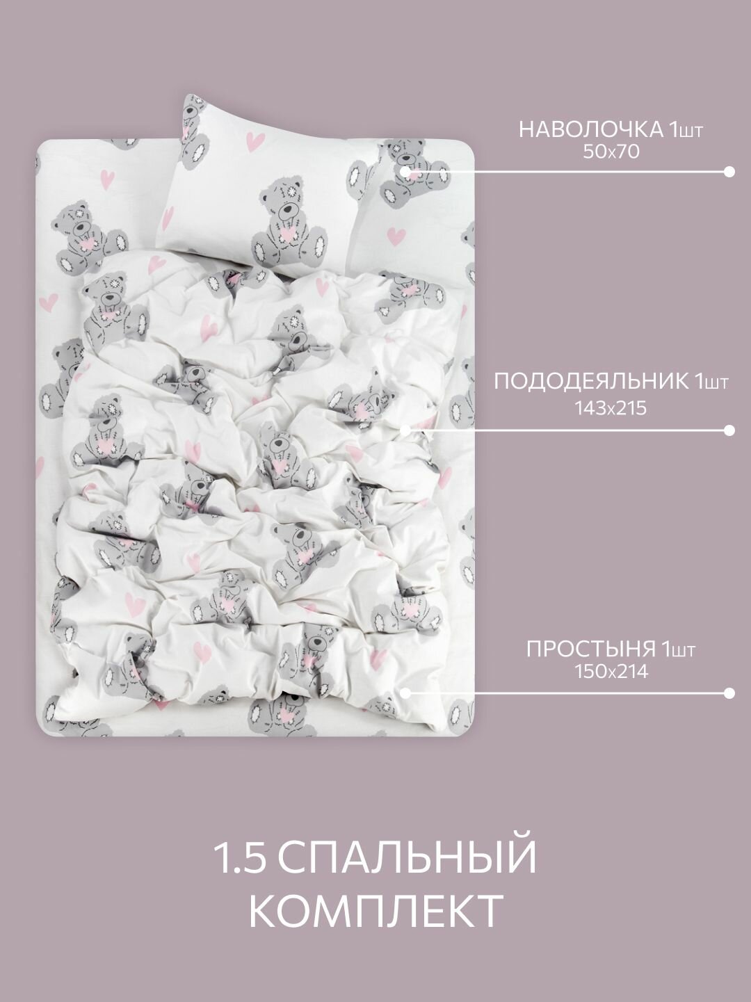 Постельное белье, Бязь, 1.5 спальное, 1 наволочка 50х70, GM, Teddy 100% хлопок: сравнение цен, характеристики, фото, актуальное наличие и цены.