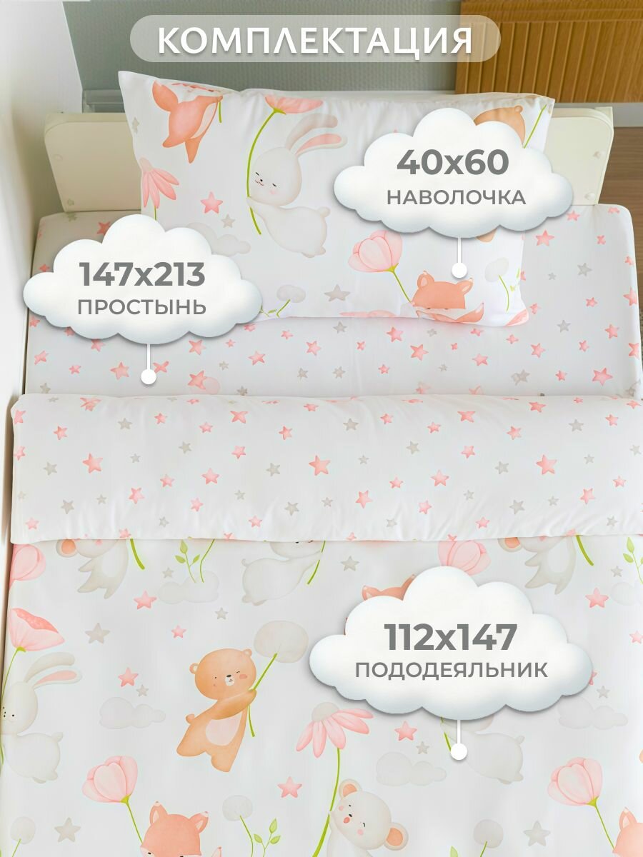 Купить Постельное белье La Notta «Лесные Зверьки», для девочек, поплин, хлопок, 160×80 с доставкой по всей России.