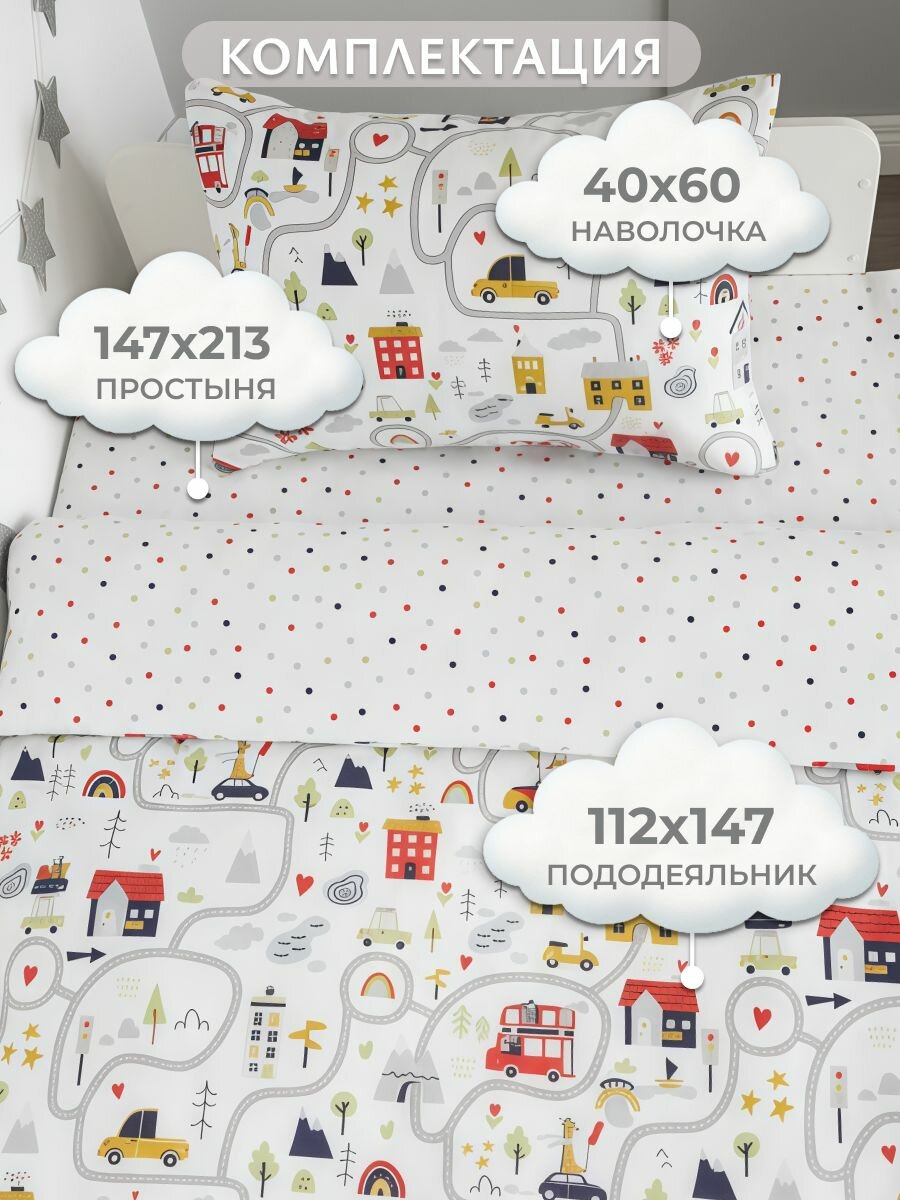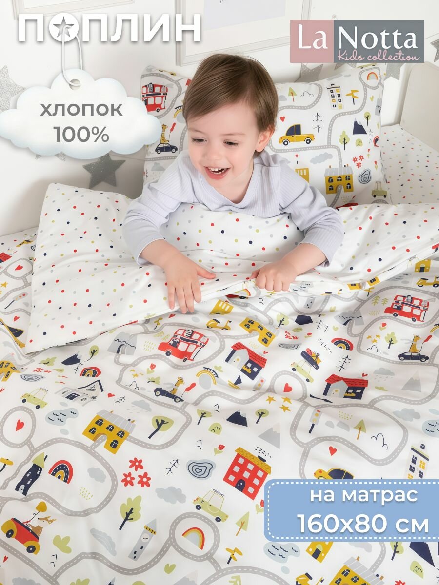 Детское постельное белье 1 спальное изготовлено из поплина- хлопок 100%. Поплин не вызывает аллергических реакций и раздражений на коже, впитывает излишнюю влагу, сам при этом оставаясь сухим. Постельное бельё из поплина мягкое, приятно касается кожи, износостойкое и долговечное. Милый рисунок комплекта с машинками и дорогами понравится мальчикам. Комплект постельного белья из 3 предметов подойдет на матрас 80х160 на кроватку Домик. Постельное белье от La Notta это сказка для детей, оно несомненно, понравится мальчикам. В комплект входит: Пододеяльник 112х147, наволочка 40х60. Простыня 147х213. Постельное бельё юниор станет удачной покупкой и хорошим подарком для сына, внука, мальчика. Текстиль от Российского производителя сертифицирован и абсолютно безопасен для чувствительной кожи малыша.