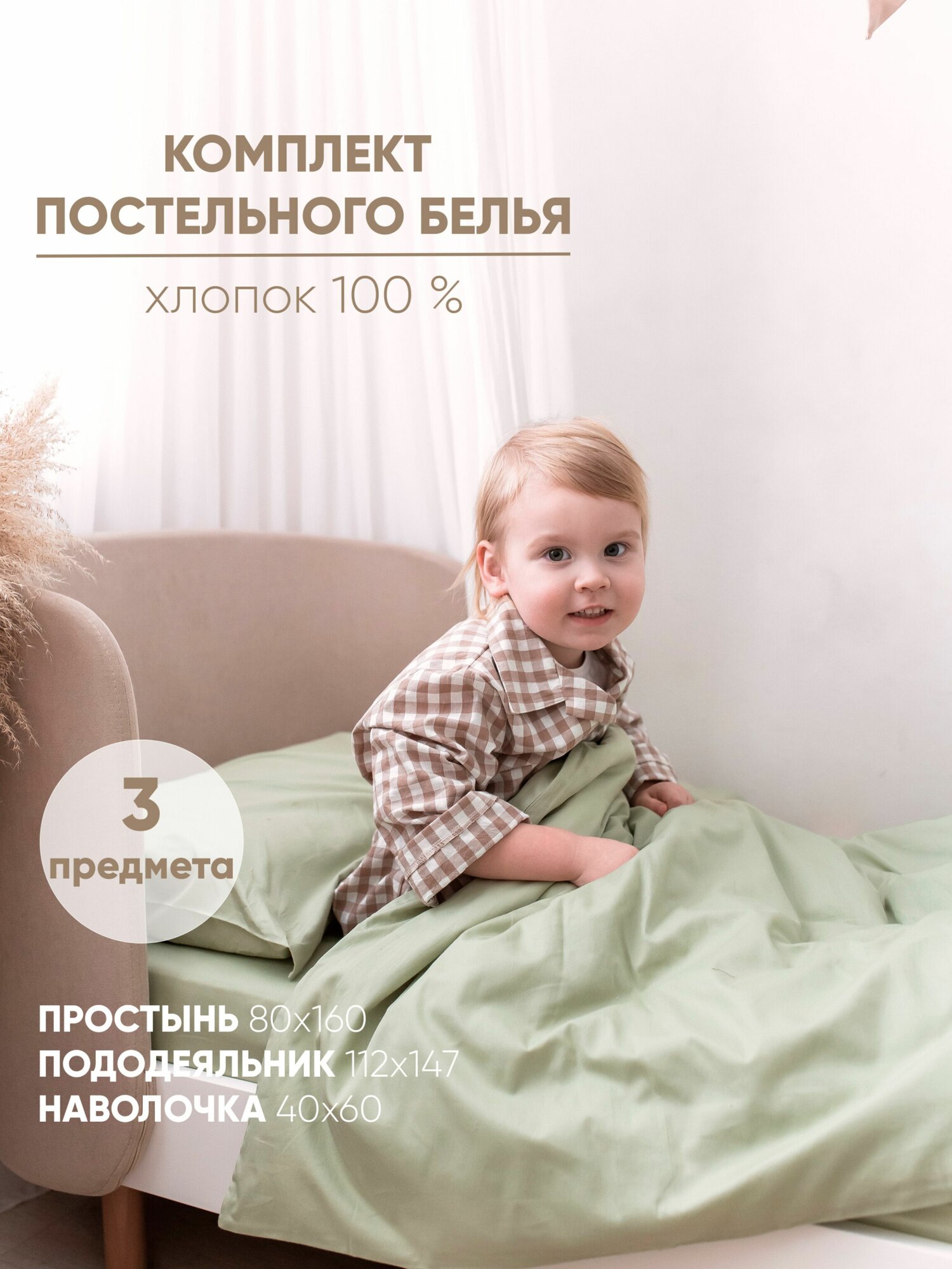 Постельное белье детское 160х80 комплект 3 предмета Sondetti, сатин 100% хлопок, на резинке