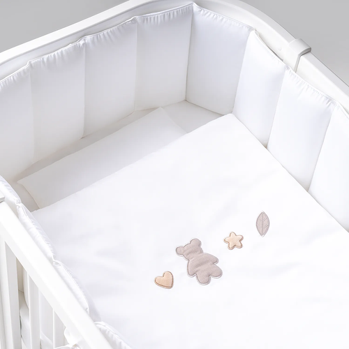 Вышивка в виде милого медвежонка, сердечка, листика и звездочки из атласных ниток придает комплекту особый шарм и уникальность. Дизайн не только радует глаз, но и развивает воображение и тактильные навыки вашего малыша.
