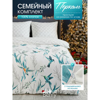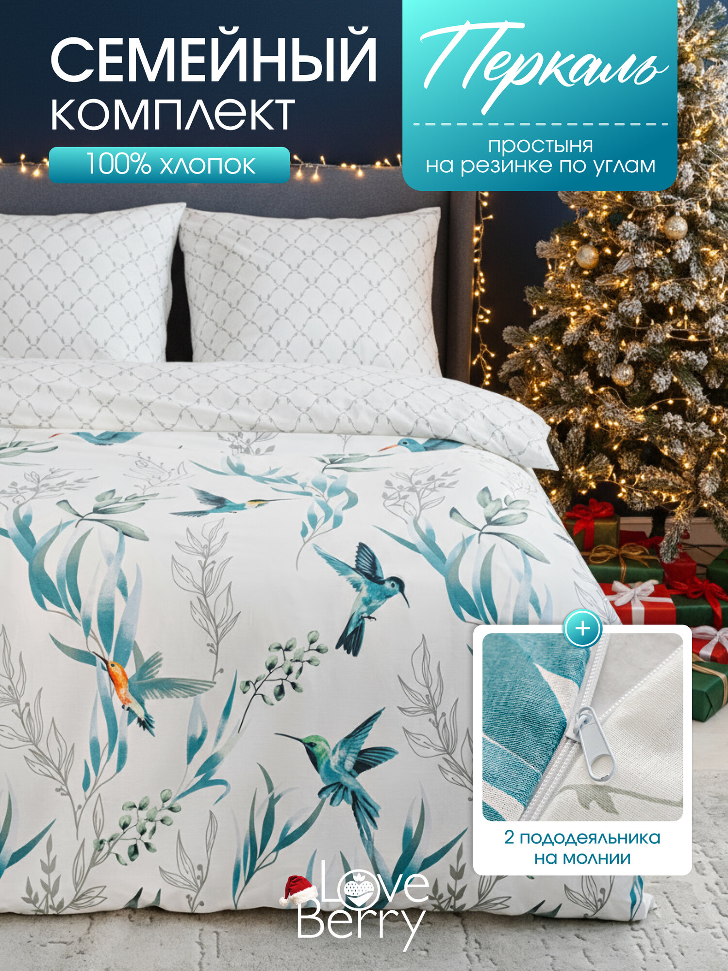 Купить Постельное белье семейное LOVEBERRY, перкаль, простыня на резинке 180х200, пододеяльник на молнии, наволочка-трансформер с доставкой по всей России.