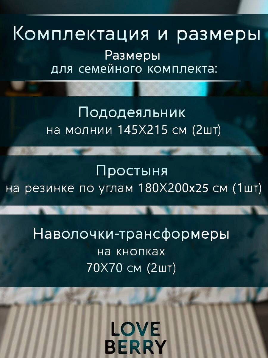 Постельное белье семейное LOVEBERRY, перкаль, простыня на резинке 180х200, пододеяльник на молнии, наволочка-трансформер: сравнение цен, характеристики, фото, актуальное наличие и цены.