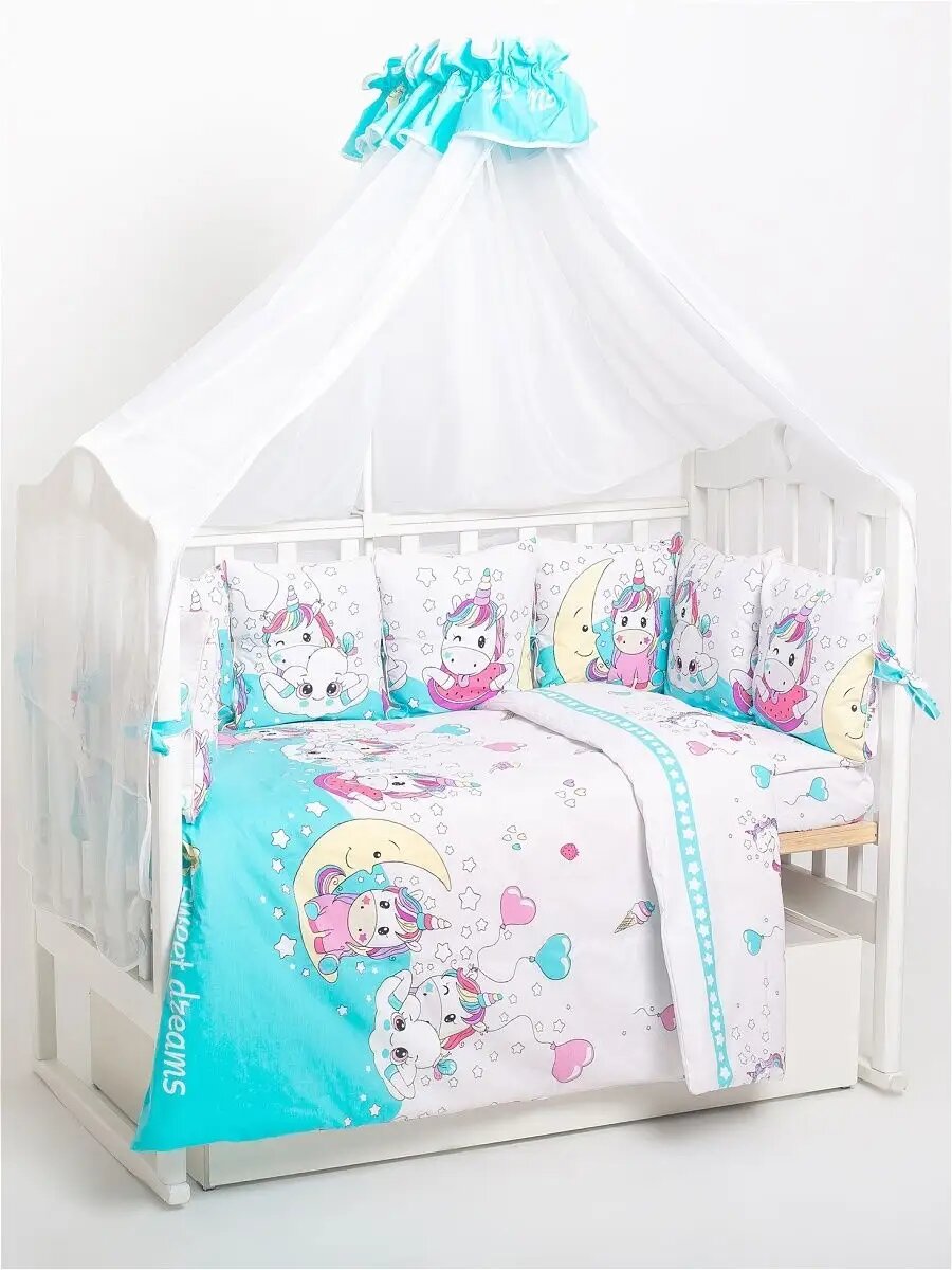 Постельное бельё Мой Ангелочек, органический хлопок, бирюзовое, 23 предмета: сравнение цен, характеристики, фото, актуальное наличие и цены.
