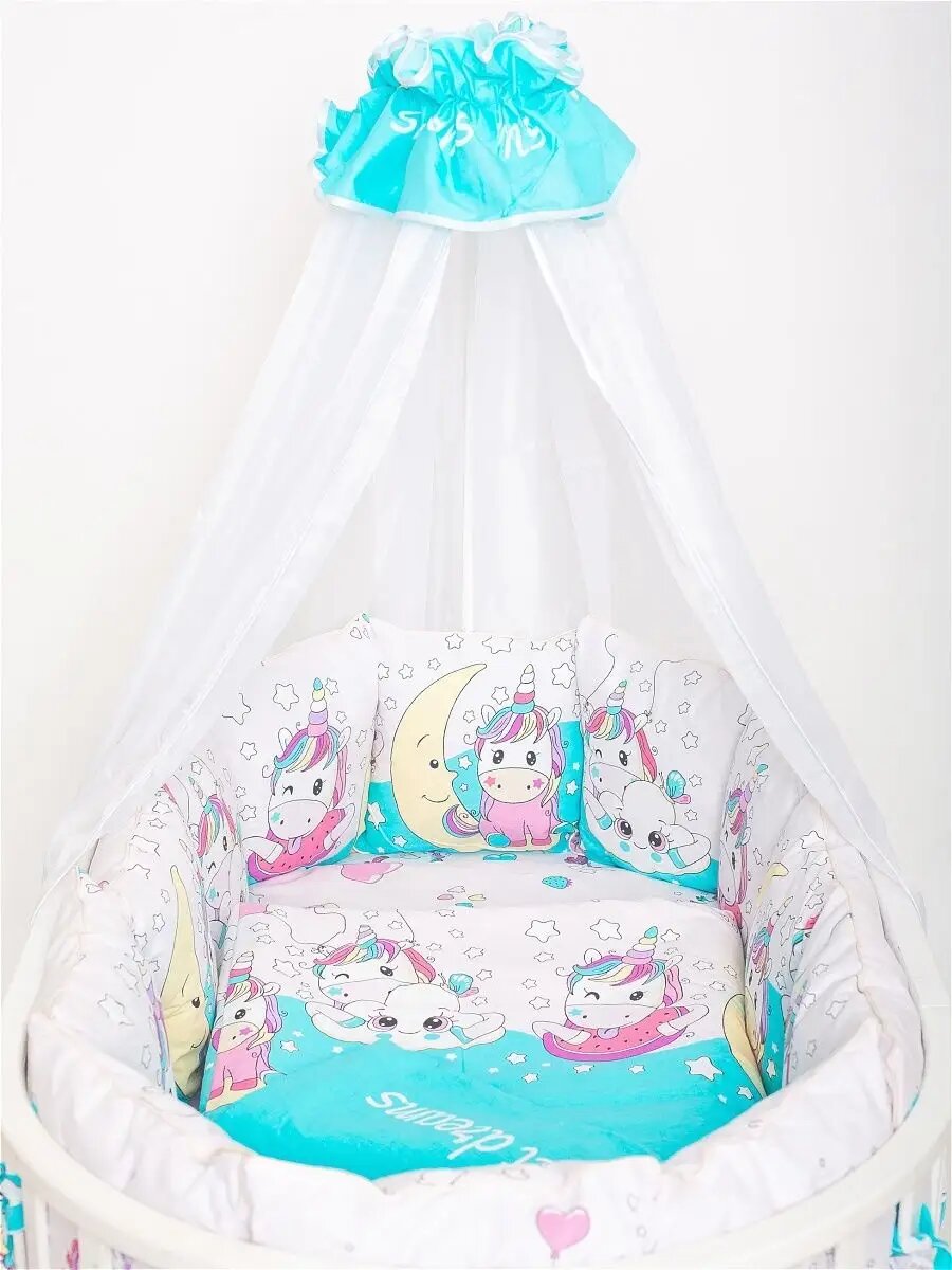 Купить Постельное бельё Мой Ангелочек, органический хлопок, бирюзовое, 23 предмета с доставкой по всей России.
