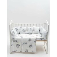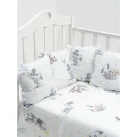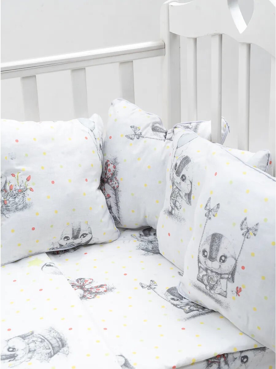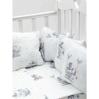 Продуманные до мелочей, бортики оснащены съемными чехлами на молнии, что облегчает уход и позволяет поддерживать безупречную чистоту. Наполнитель бортиков бережно помещен в чехол из спанбонда. Чехлы подушки и одеяла выполнены из 100% хлопка, дарящего коже малыша нежные прикосновения.