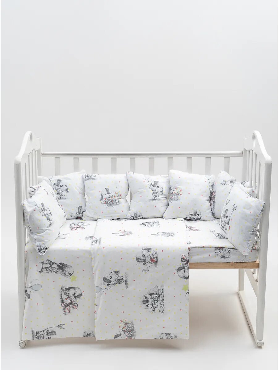 1. Бортики-подушки, словно облака, размером 30х30 см – 12 шт, для создания уютного кокона.