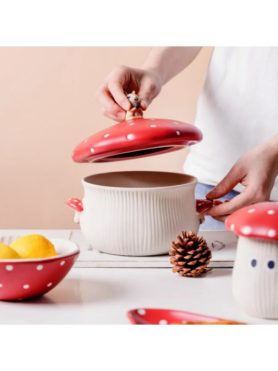 Кастрюлька для подачи в виде "Мухоморчики" с белочкой, из высококачественной керамики, ручная работа - идеальный выбор для повседневного использования или сервировки стола на любое мероприятие. Блюдо можно использовать как в качестве детских, так и взрослых предметов на кухне. Для супа и салатов. Уютный и обоятельный дизайн, который впишется в любой интерьер, добавляя ему изюминку. Превратит каждый прием еды в праздник, создавая хорошее настроение как у взрослых, так и у детей. Станет идеальным подарком для подруги, мамы, сестры, коллеги, любимой или ребенка на День рождения, новоселье, юбилей или просто так, без повода. Не изменяют вкусовые качества, запах и цвет еды.