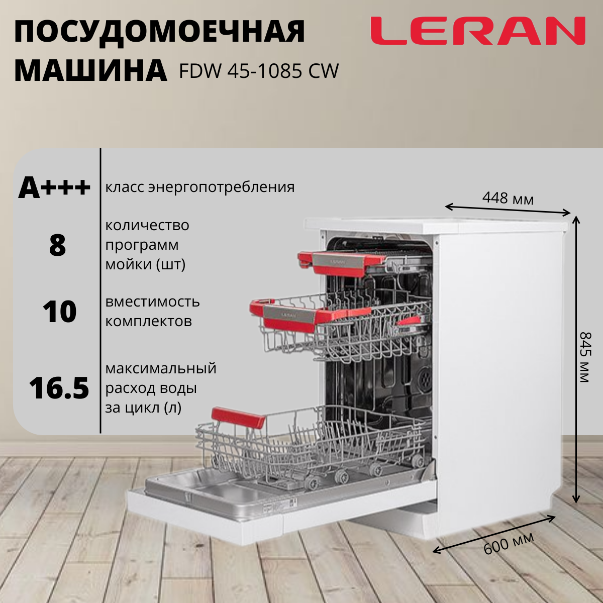 Посудомоечная машина 45 см Leran FDW 45-1085 CW, 10 комплектов посуды, 8 программ белый: сравнение цен, характеристики, фото, актуальное наличие и цены.