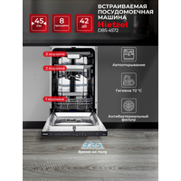 Посудомоечная машина 45 встраиваемая Hietzel DBS 4572, луч в пол, Aqua Stop, 10 комплектов, автооткрывание дверцы: сравнение цен, характеристики, фото, актуальное наличие и цены.