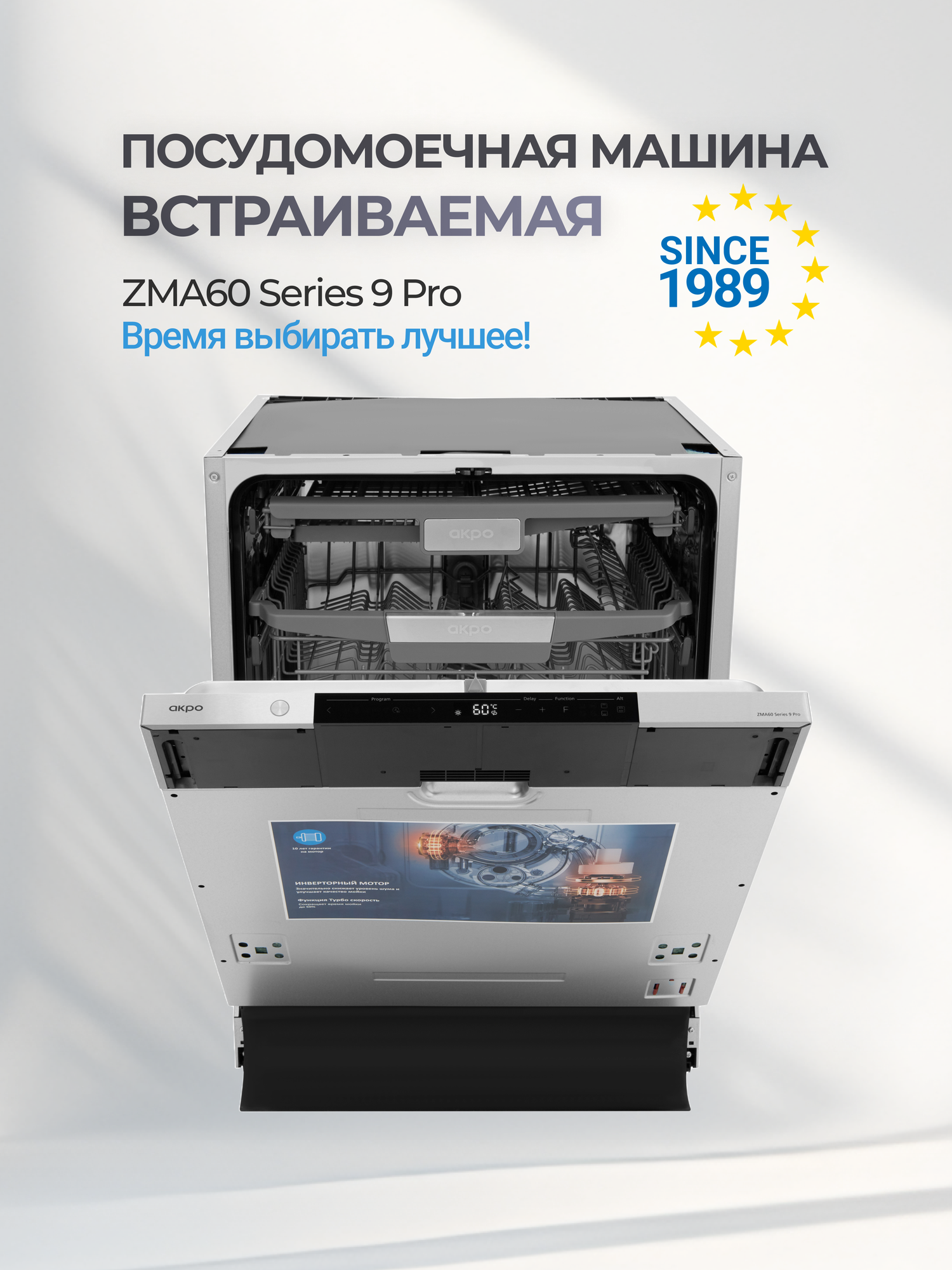 Посудомоечная машина AKPO ZMA60 Series 9 Pro, сенсорное управление, конденсационная сушка, класс A+++: сравнение цен, характеристики, фото, актуальное наличие и цены.