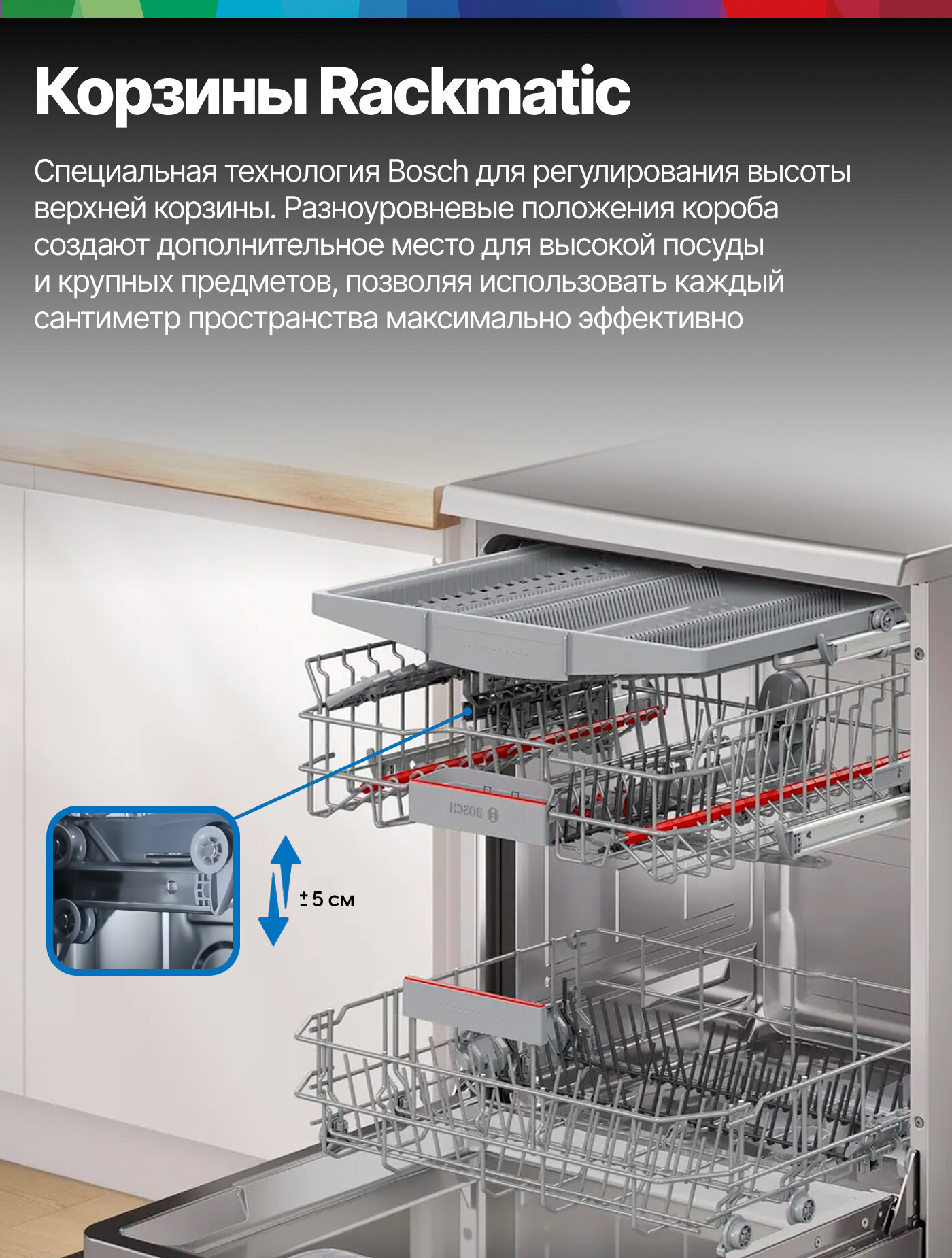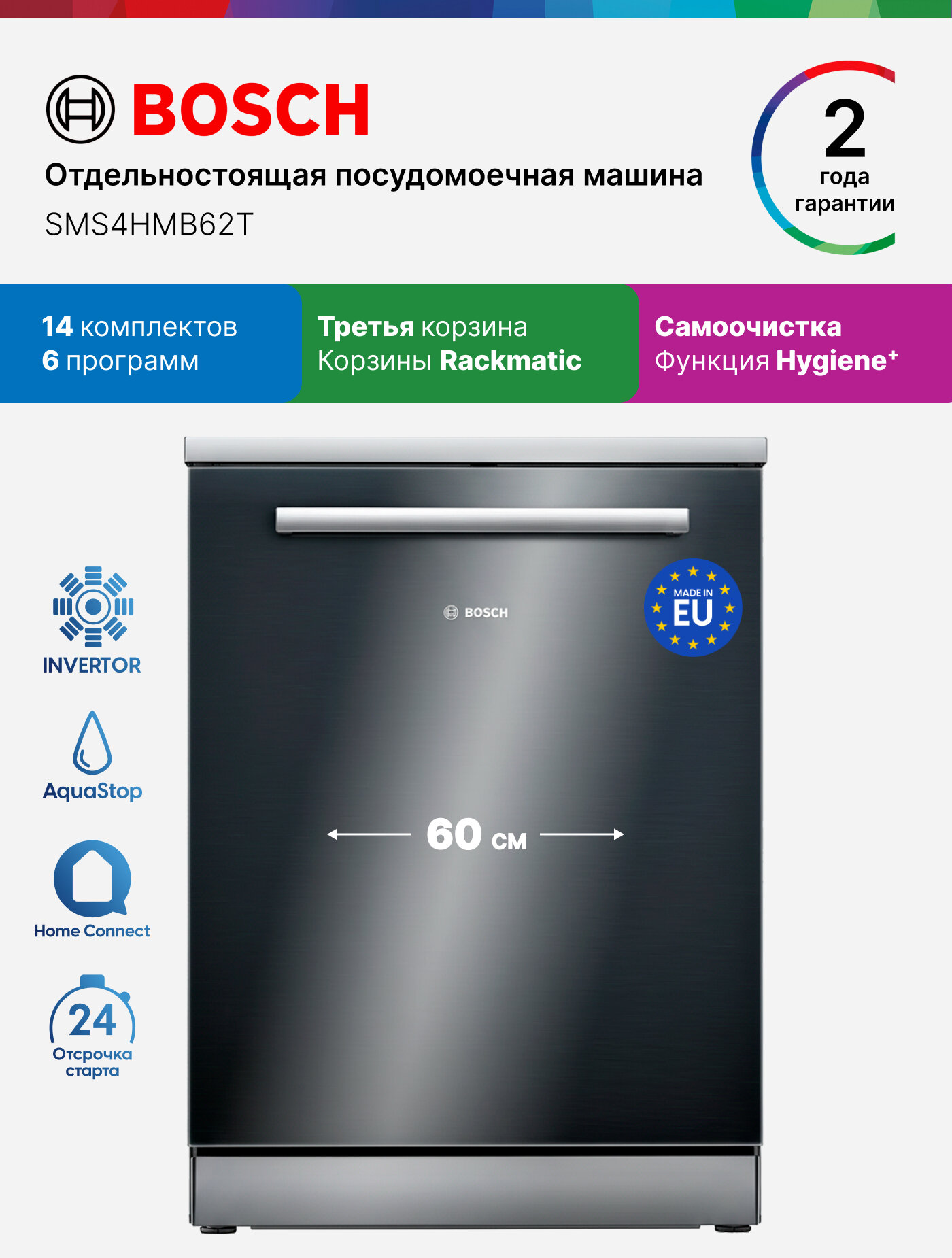 Купить Посудомоечная машина BOSH SMS4HMB62T защита от протечек, отсрочка запуска 24ч с доставкой по всей России.