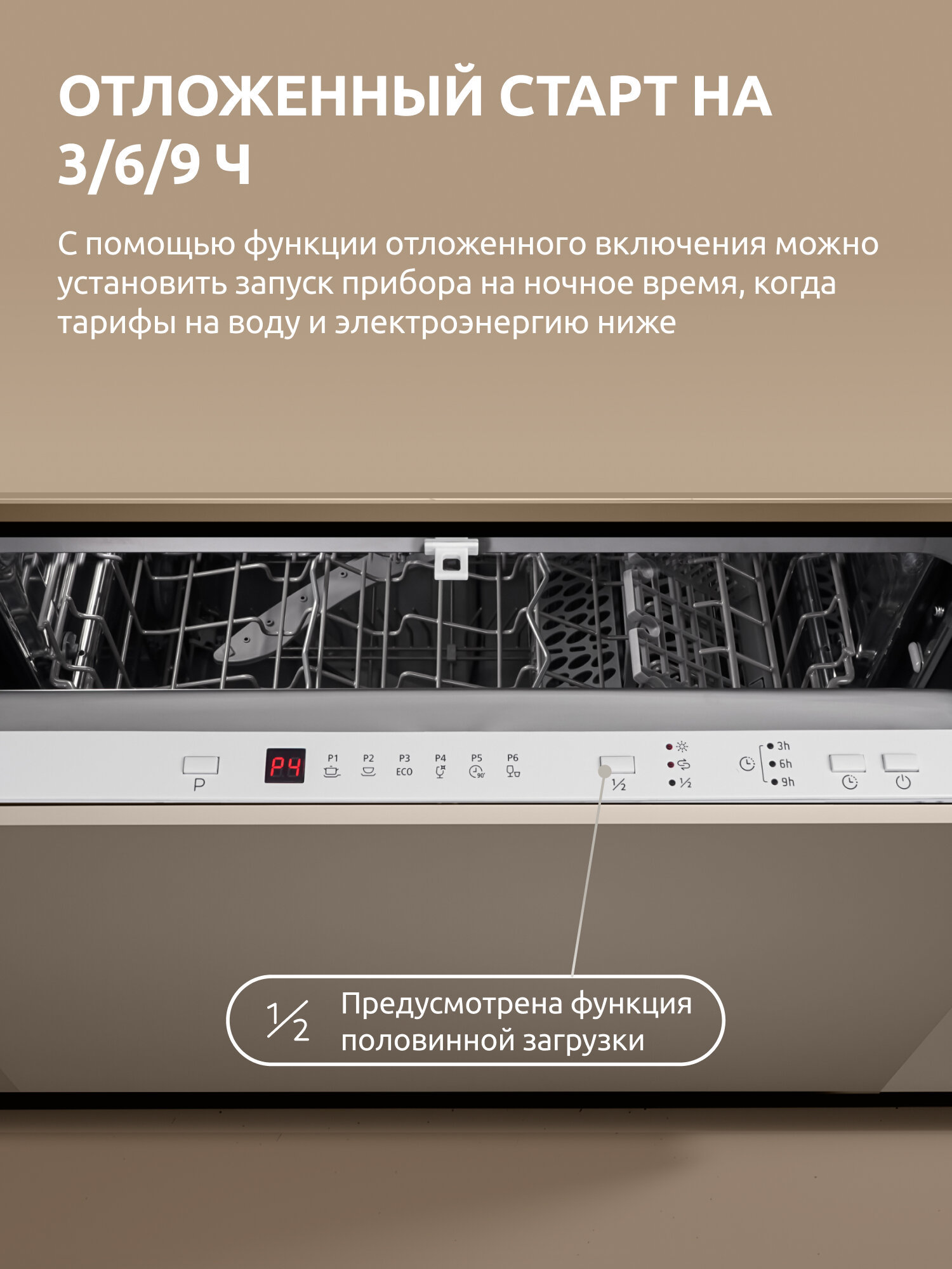 дисплей, регулируемая по высоте корзина для посуды, таймер отсрочки, использование средств 3 в 1, внутренняя поверхность из нержавеющей стали