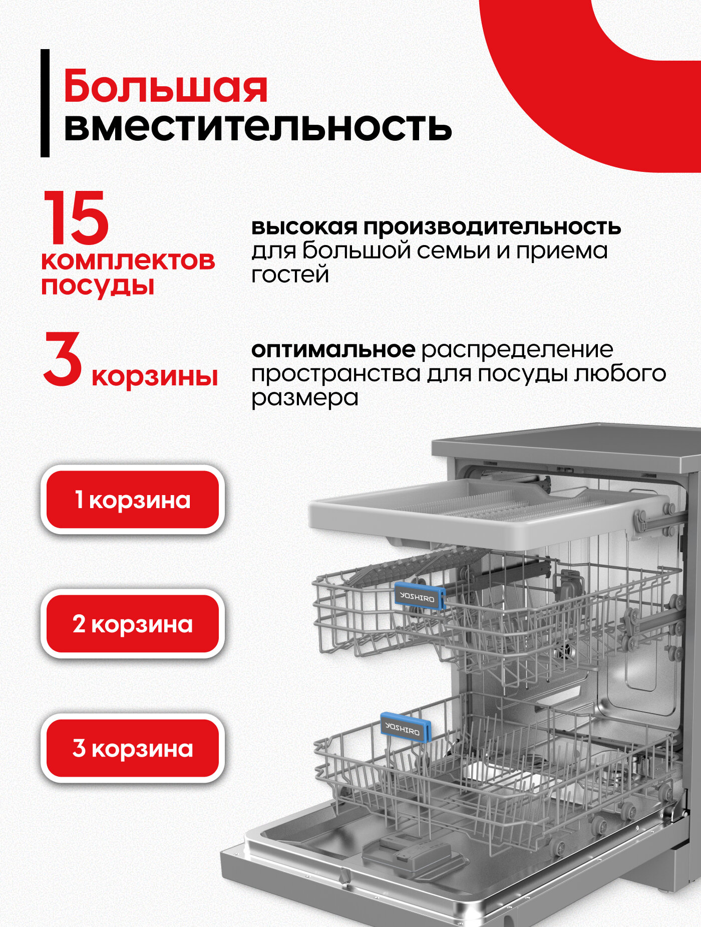 Посудомоечная машина отдельностоящая 60 см YOSHIRO YDW-S60B3Y61, дополнительная сушка, половинная загрузка: сравнение цен, характеристики, фото, актуальное наличие и цены.