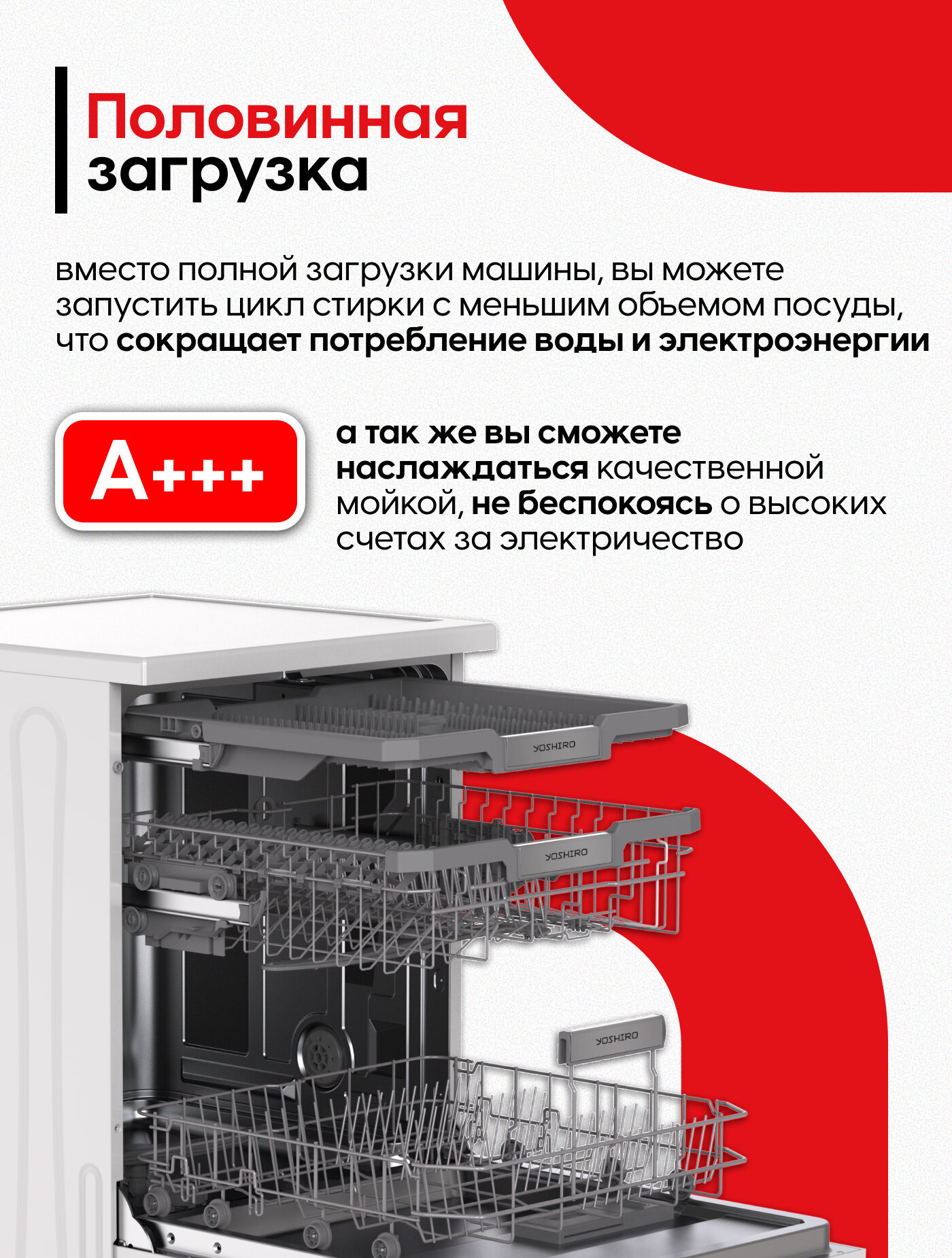 Купить Посудомоечная машина отдельностоящая 60 см YOSHIRO YDW-S60B3Y62, отсрочка запуска с доставкой по всей России.