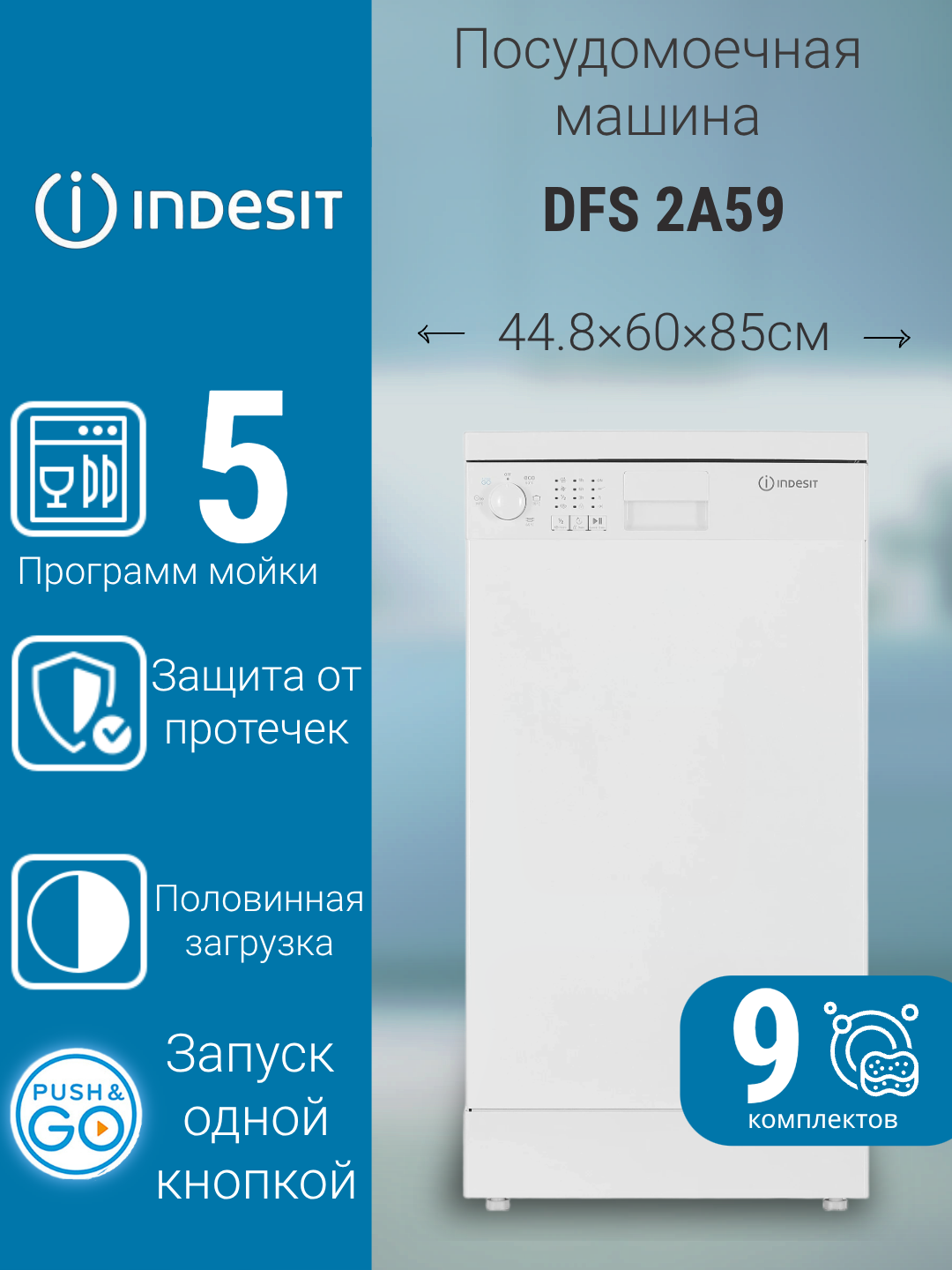 Посудомоечная машина отдельностоящая узкая Indesit DFS 2A59, белый, 45 см, 9 комплектов, 5 программ.: сравнение цен, характеристики, фото, актуальное наличие и цены.