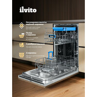 Встраиваемая посудомоечная машина ILVITO IDWB 459 Sabbia — это сочетание компактности, технологичности и итальянского стиля в каждой детали. При ширине всего 45 см она вмещает до 9 комплектов посуды, обеспечивая полноценный функционал даже на ограниченной кухонной площади.