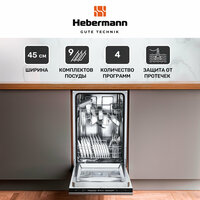 Посудомоечная машина встраиваемая HBSI 4524.1, 45см, 4 программы (интенсивный, экономный, 90 минут, быстрый), Система защиты от протечек-AquaBlock, отложенный старт.: сравнение цен, характеристики, фото, актуальное наличие и цены.