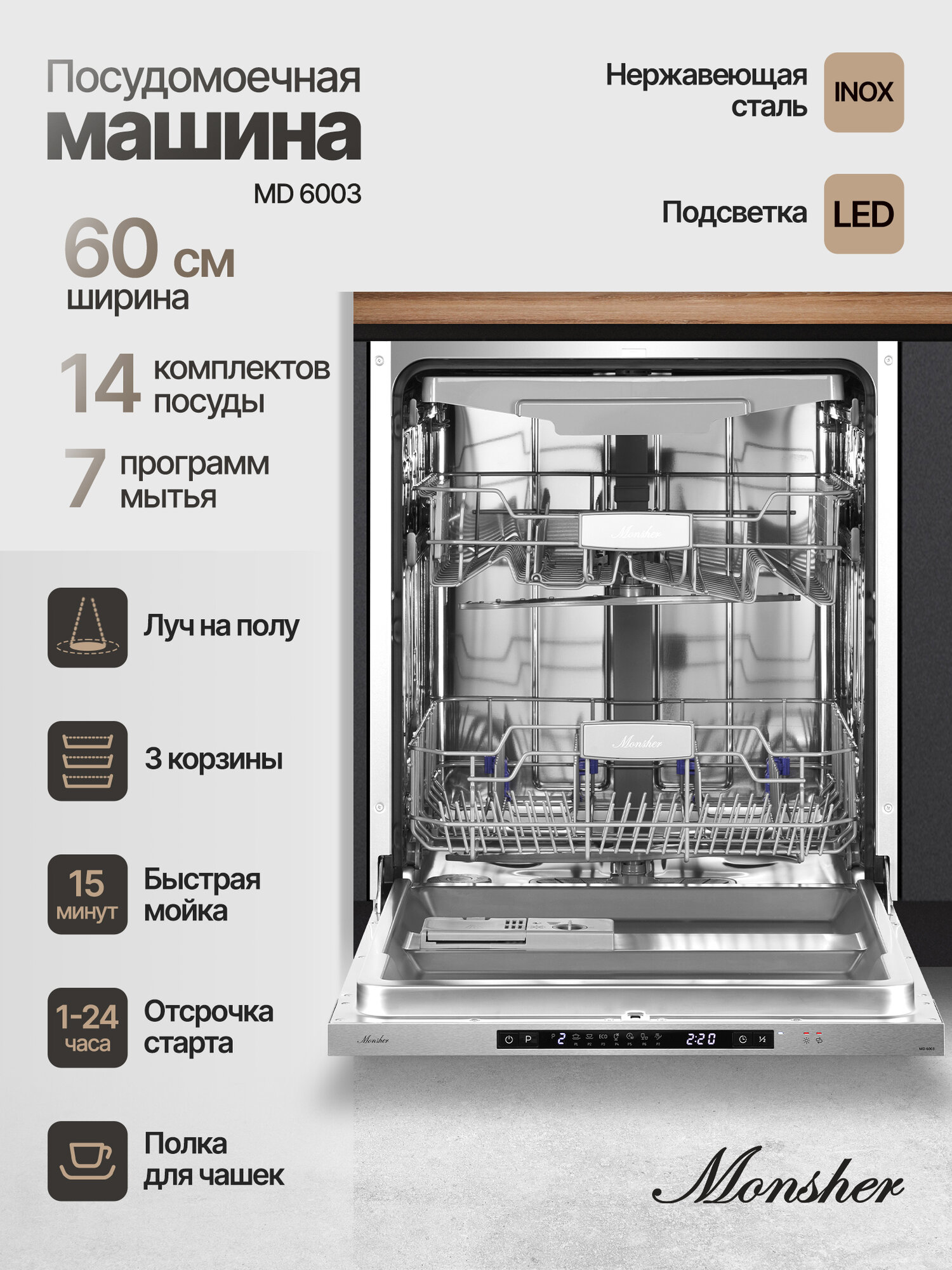 Купить Посудомоечная машина встраиваемая Monsher MD 6003 (Модификация 2025 года) с доставкой по всей России. Посудомоечная машина встраиваемая Monsher MD 6003 (Модификация 2025 года): сравнение цен, характеристики, фото, актуальное наличие и цены.