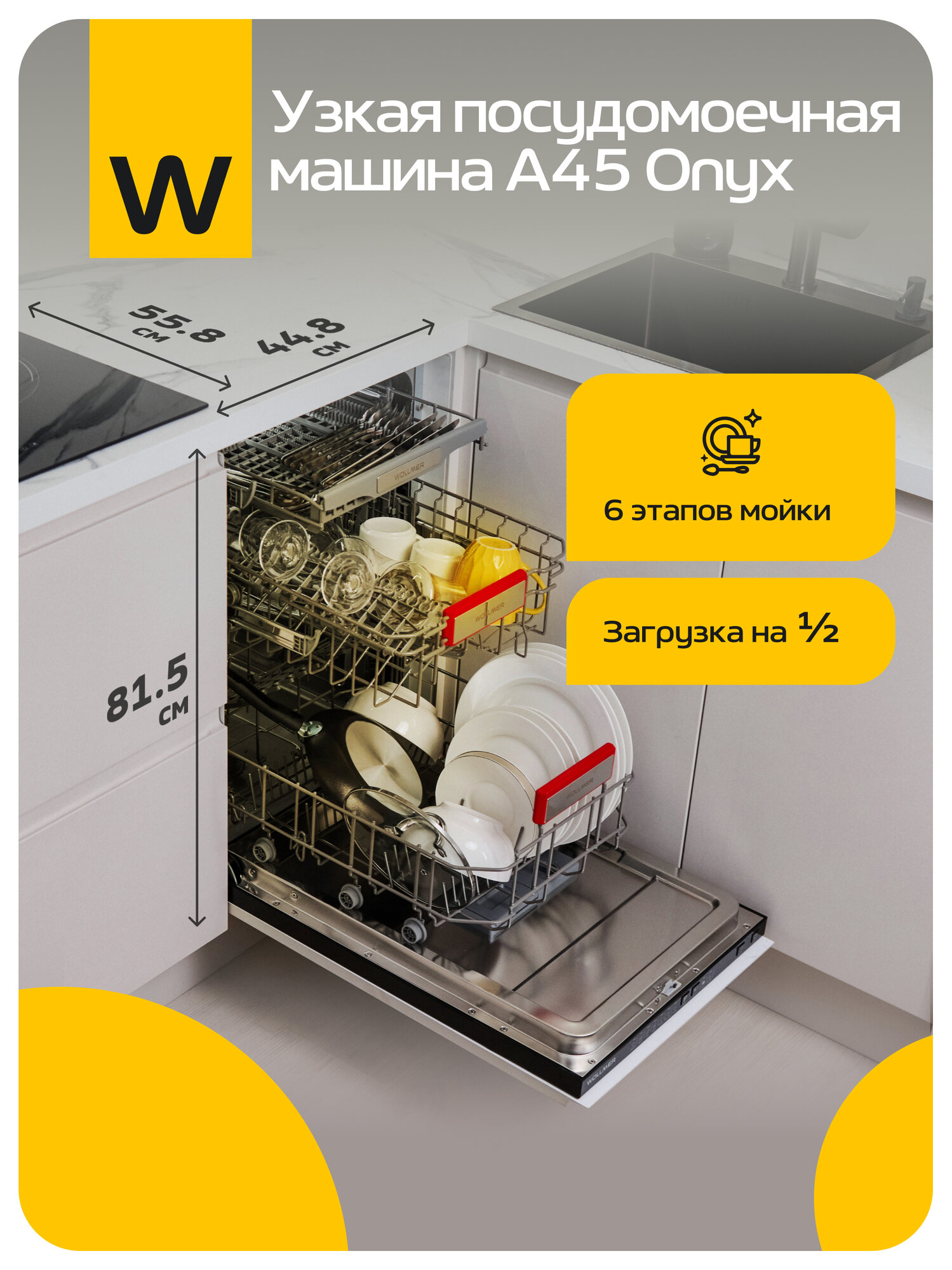 Посудомоечная машина Wollmer A45 Onyx: сравнение цен, характеристики, фото, актуальное наличие и цены.