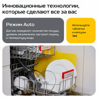 | Особенности | внутренняя поверхность из нержавеющей стали, дисплей, использование средств 3 в 1, регулируемая по высоте корзина для посуды |