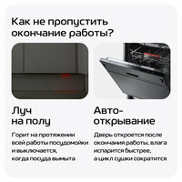 | Особенности конструкции | автоматическое открывание дверцы по завершении цикла, дисплей, использование средств 3 в 1, подсветка камеры, регулируемая по высоте корзина для посуды |