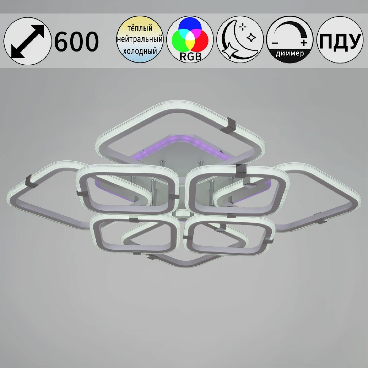 Потолочная люстра Reluce 06321-3.3-4+4A WH+CR (RGB): сравнение цен, характеристики, фото, актуальное наличие и цены.