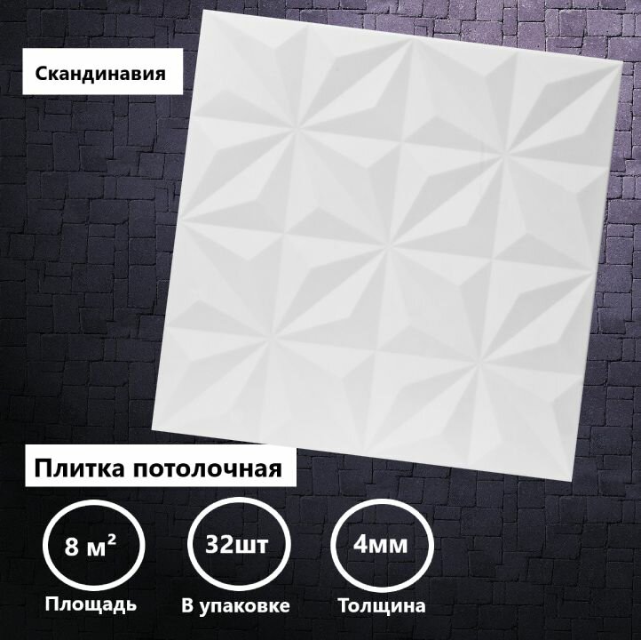 Потолочная плитка 8 кв. м, 32 шт,50см*50см «Скандинавия»/Экструдированная/Пенопласт: сравнение цен, характеристики, фото, актуальное наличие и цены.