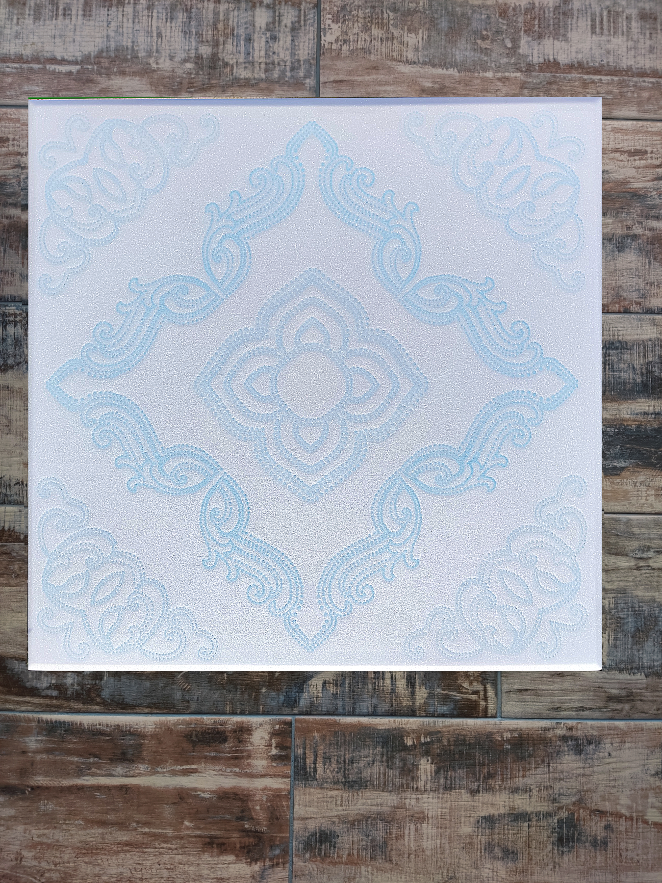 Отделка плиткой с рисунком имеет красивое оформление, частичное поглощение шума, теплоизоляцию. Плитка стойко переносит перепады температуры, скачки уровня влажности, её можно применять для облицовки потолков или даже стен в ванной, на кухне, в спальне или детской комнате.