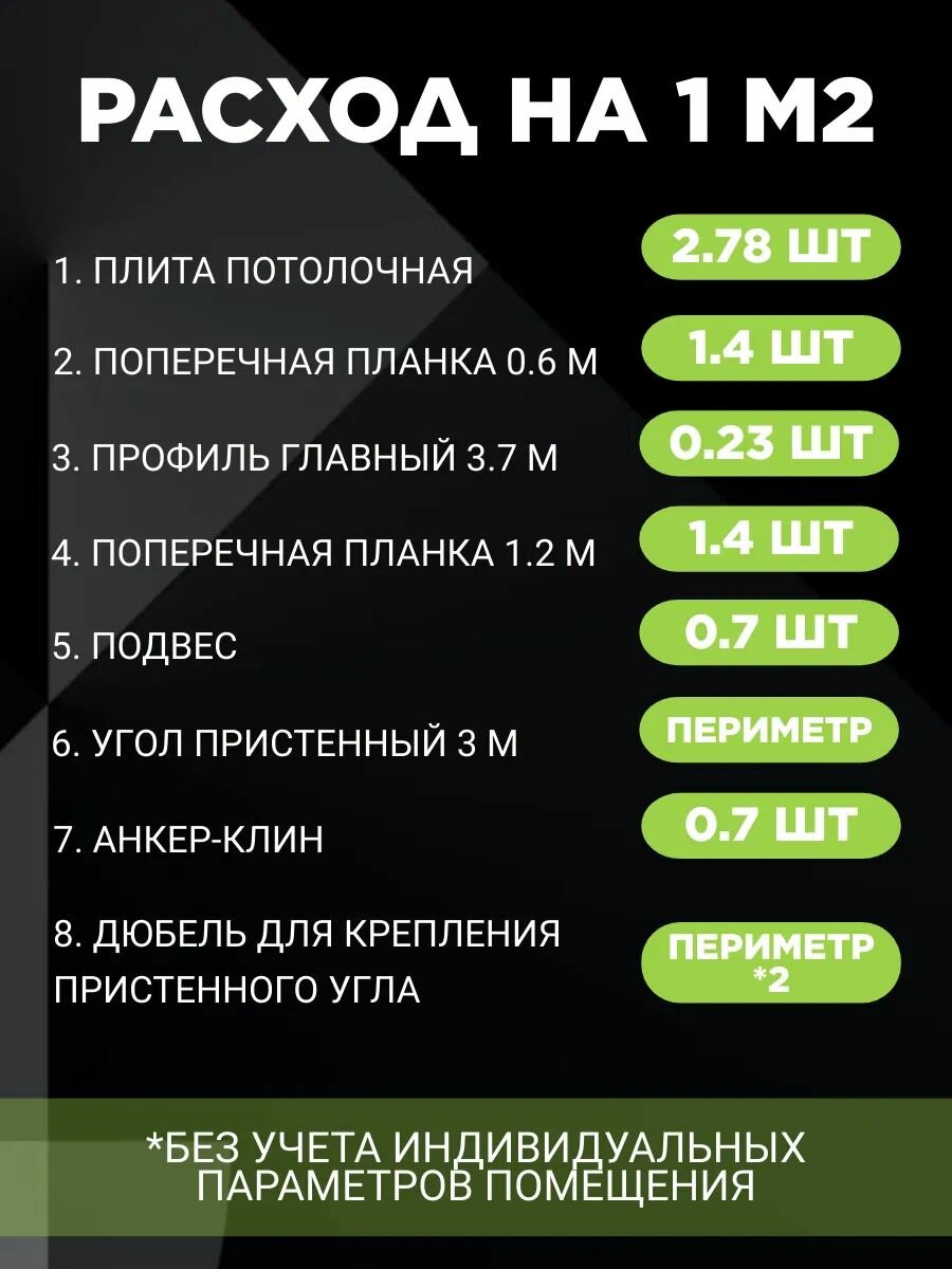 | Подробная комплектация | Комплект плиток потолочных для подвесной системы - 1 шт |